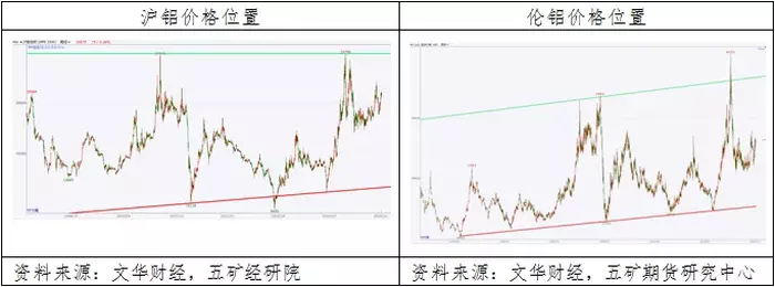 沪铝和伦铝价格分别处在长期价格区间中部偏高和中部位置。沪铝期货价格长期运行区间在11500-25000元/吨,伦铝期货价格长期运行区间在1500-3600美元/吨。10月21日,沪铝主力合约收盘价20940元/吨,处在长期价格区间70%分位;伦铝期货收盘价2595.5美元/吨,处在长期价格区间52%分位。