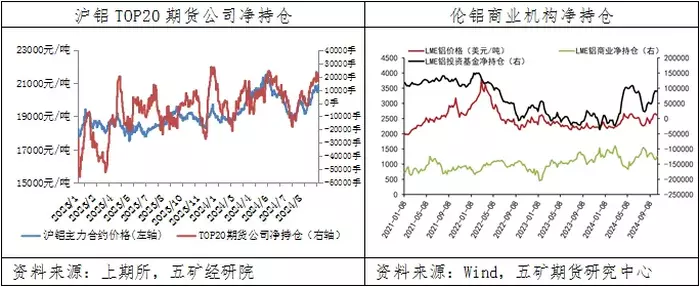 国内主力和国际金融资本扩大多头敞口。10月21日,沪铝持仓量TOP20期货公司持有净多头19654手,上月同期持有净空头8204手,扩大多头敞口;伦铝商业机构持有净空头123009手,较上月同期空头敞口扩大5181手,投资基金持有净多头91466手,较上月同期多头敞口扩大33814手。