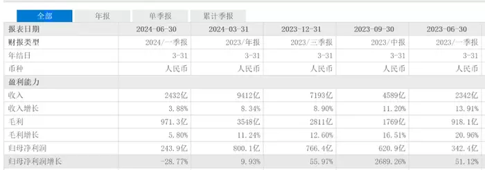 各大平台的业绩增长放缓,也亟需李子柒这样的大IP寻求突破。以淘宝为例,高盛报告显示,淘宝天猫的市场份额从2019年的66%,下降至2022年的44%左右,四年降幅1/3。2024年淘宝的市场份额还剩多少没有公开数据,但是这两年,拼多多和抖音的势头是越来越猛了,还有视频号、小红书、快手等一众内容平台的竞争,市场份额下滑是必然的。阿里财报显示,2024一季报营收增幅下滑至3.88%,净利润下滑28.77%,自2023一季报营收增幅13.9%后持续下滑,净利润首次出现下滑。