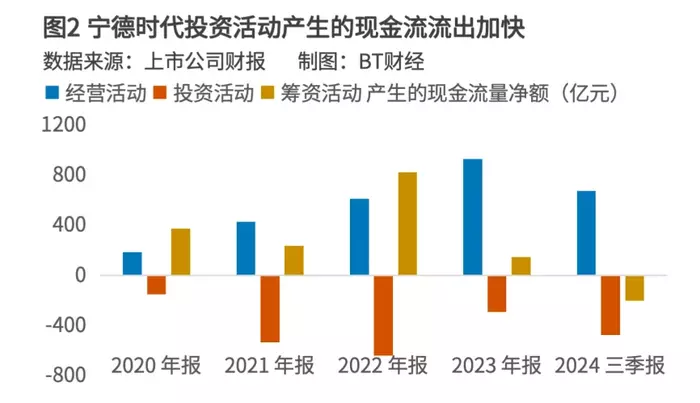 资金流方面,三季报显示,投资活动产生的现金流量净额为-478.94亿元,已经超过2023年全年的-291.88亿元。公司在财报中解释,主要为本期收回股权投资现金减少及购买理财产品金额增加导致。经营活动产生的现金流量净额为674.44亿元,高于2023年同期的526.54亿元。