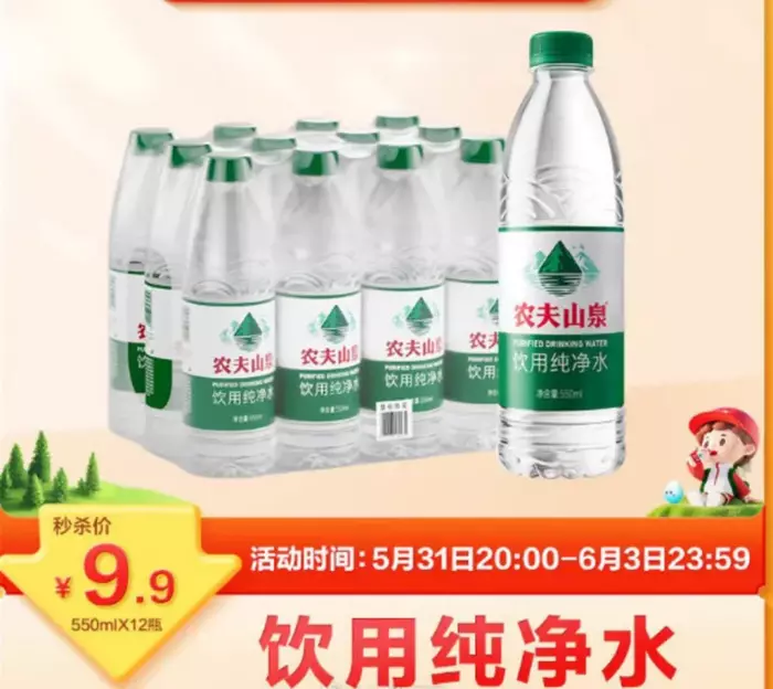这一举动被众多网友视为“食言了”,BT财经注意到,农夫山泉绿瓶纯净水投入市场的时机,正是钟睒睒和农夫山泉被网暴最严重的时期,且该产品进入市场的价格极低,12瓶包装的零售价只有9.9元,甚至在一些活动中价格还有优惠,每瓶水约0.7元左右,这一价格几乎是行业的最低价,包装水市场掀起一轮价格战。
