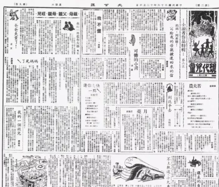在同一天发表的还有《大公报》“现代儿童”栏目主编、儿童文学家陈伯吹的《不上轨道的小火车头》。41年后,陈伯吹在《解放日报》朝花副刊发表《遥寄琼瑶》一文回忆道,“当时周末版的副刊是巴金、靳以合编的《文艺》;星期日的副刊,我负责编辑的《现代儿童》。一位年仅九岁的读者寄来了题为《可怜的小青》的文章。文章感情真挚,文笔清丽,我拿出来发表了。四十年后的今天才知道这位陈喆就是当今台湾文坛上享有盛誉的著名作家琼瑶。”