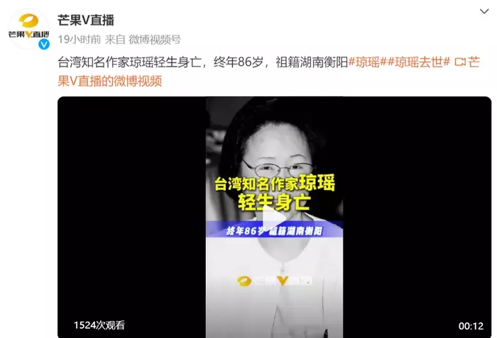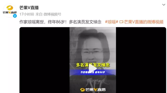 琼瑶去世后,芒果超媒在第一时间发文哀悼,并转发众多演员的悼念。