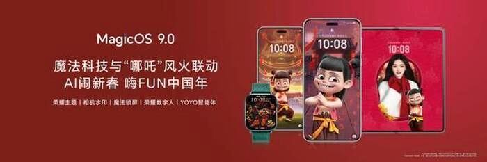此外,荣耀与“哪吒”风火联动,基于MagicOS 9.0开发更多有趣互动体验。荣耀手机与荣耀手表用户可进入主题商店和荣耀运动健康APP,解锁“哪吒”IP联名定制主题特效,更有魔法锁屏、数字人、YOYO智能体、相机水印等限时体验陆续开放中。同时,用户还可参与抖音、小红书#荣耀魔法科技年货节#话题活动,发布荣耀与“哪吒”相关内容即有机会赢取荣耀手机。