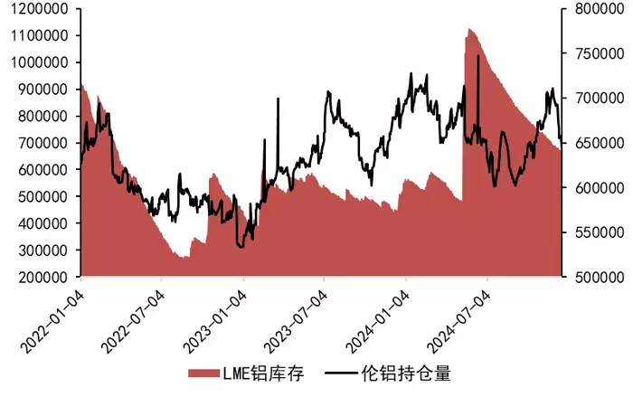 伦铝库存和盘面持仓量 |