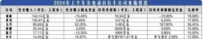 雅迪此前已经连续8年全球销量第一,销量还是名副其实的一哥,但此前的优势已经被逐渐蚕食和削弱,甚至净利润也被爱玛反超,在盈利能力方面,雅迪的一哥已经“名不副实”。九号在2024年上半年营收还约为雅迪的三分之一,但在2024年全年营收被雅迪远远拉下的情况下,电动车行业毛利率最高的他们也有望在净利润上赶超雅迪。