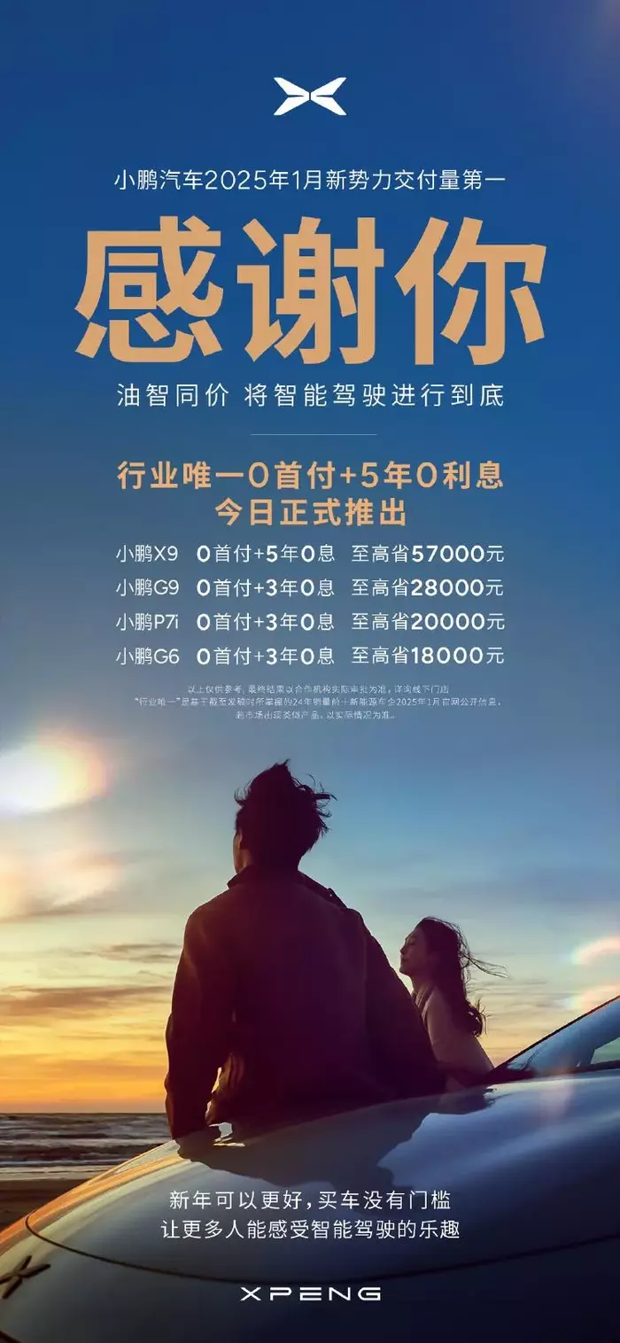 从新年第一月的销量登顶,再到春节后开工第一天的“5年0利息0首付”王炸,小鹏的反击开始了。