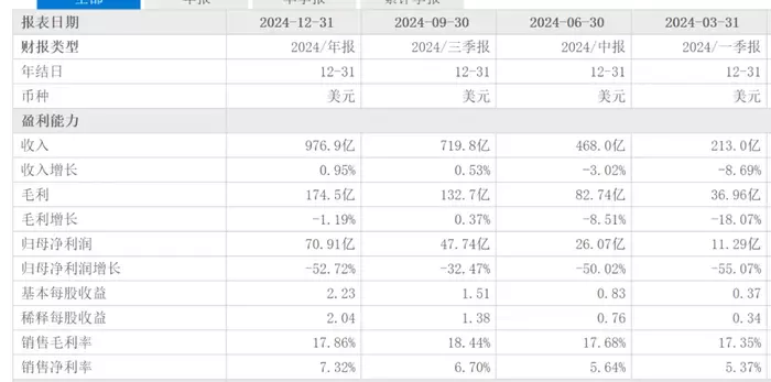 不久前的特斯拉财报披露,2024年特斯拉销量为179万辆,相比2023年的180.9万辆下滑了1.1%。整体销量依然仅次于比亚迪,在全球新能源汽车领域稳居第二。但特斯拉的成长性遭遇挫折,来自汽车业务的收入下降,2024年特斯拉总营收达977亿美元(约合人民币7085亿元),同比增长不足1%,归母净利润70.91亿美元,同比上一年150亿美元下滑了53%。其中汽车业务总营收为770.70亿美元,同比下降6%,占总营收比例的79%。作为对比,中国车企比亚迪、吉利控股、奇瑞控股等车企在已经披露的2024年业绩预告中,很多营收增幅都超过20%,净利润也同步增长较快。
