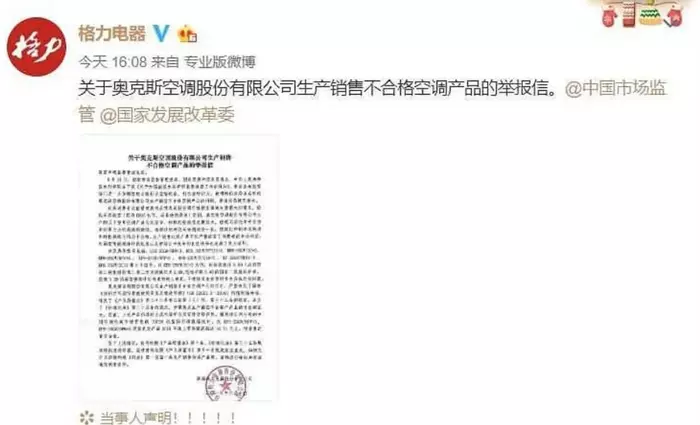 格力电器董事长董明珠多次对奥克斯公开开炮。两家恩怨最早可以追溯至12年前,当时董明珠在2013年公开指责奥克斯从格力挖墙脚,拉开了两家恩怨的序幕,随后格力不是起诉奥克斯,就是举报奥克斯。