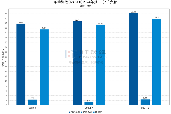 从资产负债数据来看,2024年末总资产为38.08亿元,较2023年末的34.67亿元增长了9.84%,主要由于营业收入的增加和净利润的增长,导致公司整体资产规模扩大。归属于上市公司股东的净资产为35.7亿元,较2023年末增长7.14%。流动负债为1.94亿元,较2023年末增长76.24%,非流动负债为43.81百万元,较2023年末增长80.00%,应付账款和合同负债的增加反映了公司业务扩展和订单增加的趋势。
