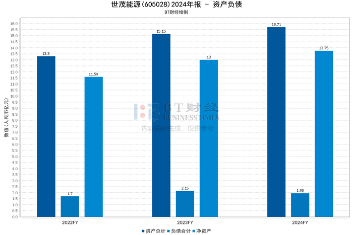 从资产负债数据来看,2024年末总资产规模为15.71亿元,较2023年末的15.15亿元增长了3.67%;归属于母公司的净资产为13.75亿元,同比增长5.83%。负债合计期末余额为1.95亿元,期初余额为2.15亿元,资产负债率从期初的14.22%降至期末的12.43%,这表明公司的资产结构有所优化,偿债能力进一步增强。