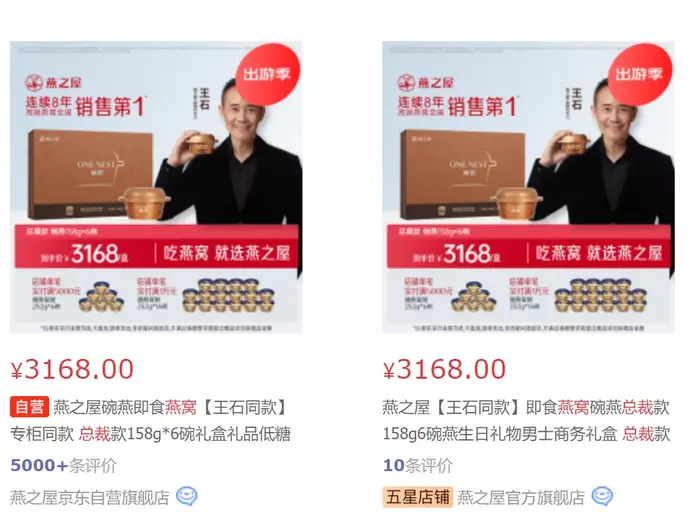王石这款最新代言的产品。在王石官宣后引发较大争议,很多网友认为6碗售价高达3168元的总裁燕窝是智商税,在王石3月18日官宣至3月24日,一周的时间,其旗舰店销量突破5000份,可见王石在商界的影响力依旧。