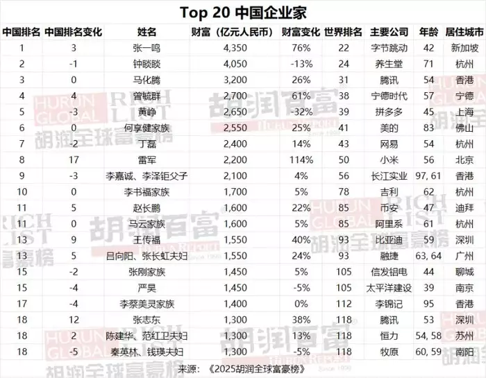 近日,《2025胡润中国富豪榜》公布,虽然张一鸣登上首富宝座值得关注,但是,更值得关注的是,雷军及8位小米高管“组团”登上富豪榜。