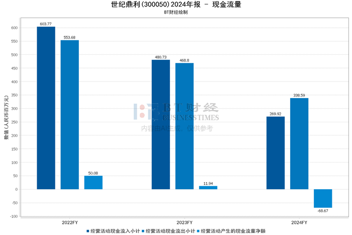 现金流量方面,世纪鼎利2024年经营活动产生的现金流量净额为-68.67百万元,同比大幅下降675.33%。这一变化主要由于销售回款减少和银行借款减少导致的经营性现金净流出增加。尽管如此,公司在投资活动和筹资活动中采取了谨慎的现金流管理策略,以应对外部环境的变化。