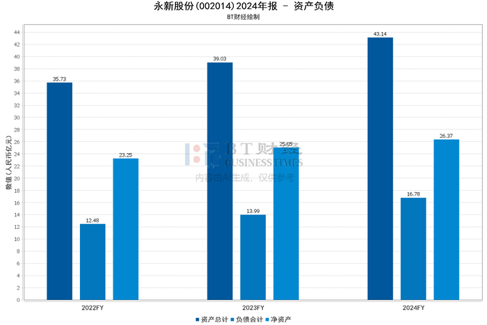 2024年末,永新股份的总资产达到43.14亿元,同比增长10.53%。归属于上市公司股东的净资产为25.89亿元,同比增长5.36%。资产负债率从2023年的35.83%上升至38.89%,显示出公司在扩大资产规模的同时,也增加了负债。短期借款增加显著,主要由于福费廷业务方式融资增加所致。
