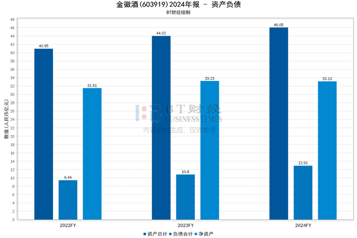 2024年末,金徽酒的总资产为46.05亿元,同比增长4.59%。归属于上市公司股东的净资产略微下降至33.24亿元,同比减少0.06%。资产负债率从2023年的24.52%上升至28.05%,显示出公司在扩张过程中负债水平有所提高。流动负债和非流动负债的增加反映了公司在市场拓展和生产能力提升方面的投入。