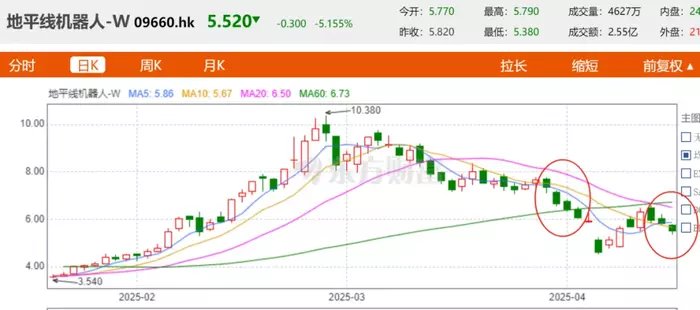地平线最终在2024年10月24日在港交所上市,发行价为3.99港元,上市首日,地平线开盘价为5.12港元/股,较发行价上涨28.3%,总市值突破667亿港元。今年2月7日,地平线市值一度突破1300亿港元,成为千亿市值的独角兽企业。截至4月16日,地平线收盘价为5.520港元,总市值为728.7亿港元。