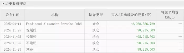 地平线在2024年10月才上市,上市后大股东们却出现一大波减持。上市一个月后的同一天有4名股东减持,且减持的股份均为9821.6万股。4月14日另一大股东Ferdinand Alexander Porsche GmbH一次性减持22.69亿股,以当日收盘价5.97港元计算,套现135.5亿港元。高管和大股东不断减持,这对一家上市只有半年左右的公司来说并非利好。