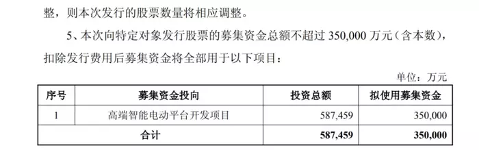 在发布年报后,4月22日,江淮汽车发布定增公告,公告称向特定对象发行定增,募资35亿元,而此前江淮汽车的定增计划是募资49亿元,相比原先的募资计划实际少了14亿元。