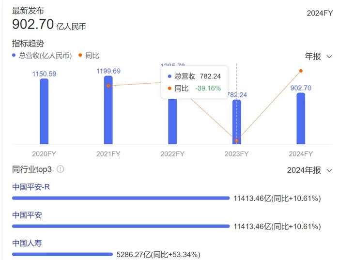 “夜总会”确实给阳光保险带来不错的业绩,最新发布的2024年财报显示,2024年阳光保险营收902.7亿元,同比增长15.40%;归母净利润54.49亿元,同比增长45.77%。