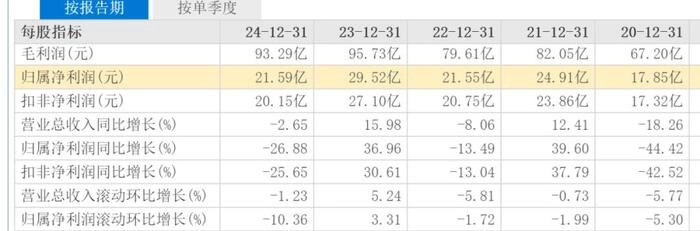 业绩下滑趋势明显