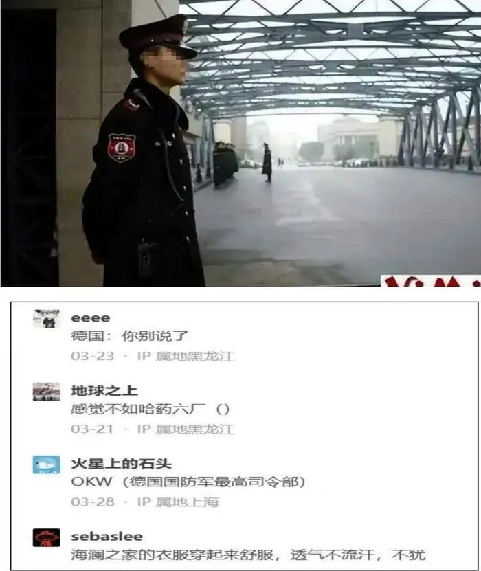 这在之前已经引发网友们的质疑,最近其保安的服饰以及三色旗,更是招来非议。其保安制服,看起来较为帅气,笔挺的制服,总给人一种军装的感觉,这样的历史场景,也在网上引发了激烈讨论,讨论的由头多是关于“文化符号”和“审美边界”。
