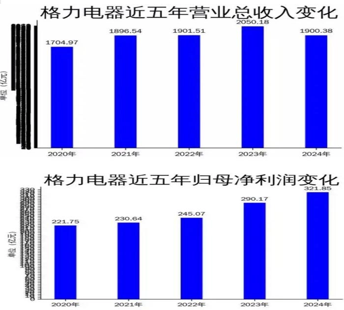 财报显示,格力2024年营收1900.38亿元,同比下降7.31%,跌破2000亿元大关。这是自2020年营收下滑14.97%后的再一次下滑。同期净利润321.85亿元,同比增长10.91%。财报披露,营收下滑,净利润大幅提升的原因是“成本控制和运营优化”,导致盈利能力显著提升。