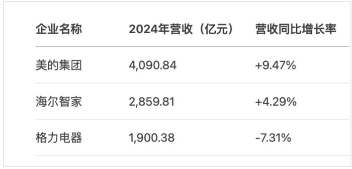 此前美的和海尔早在三月就已经发布2024年年报,至此白电三强2024年业绩完全披露。尽管国内家电行业营收超过千亿的还有海信、长虹、TCL等,但美的、格力和海尔是公认的白电三强,其他都和三强有明显的差距。