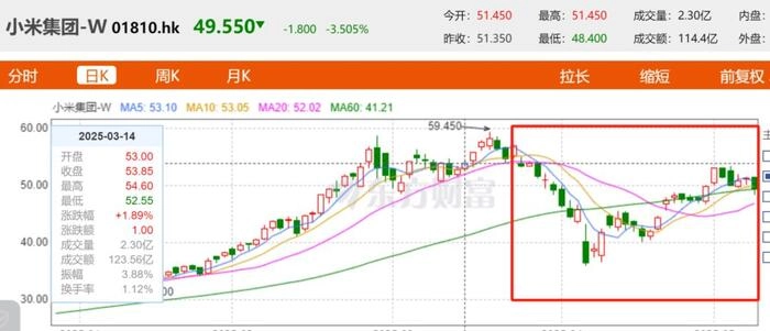 一个月前,小米SU7发生三人死亡事故,这期间小米的股价出现较大波动,和此前2024年全年股价涨幅高达121.2%相比,此期间的小米股价出现一定的下跌。