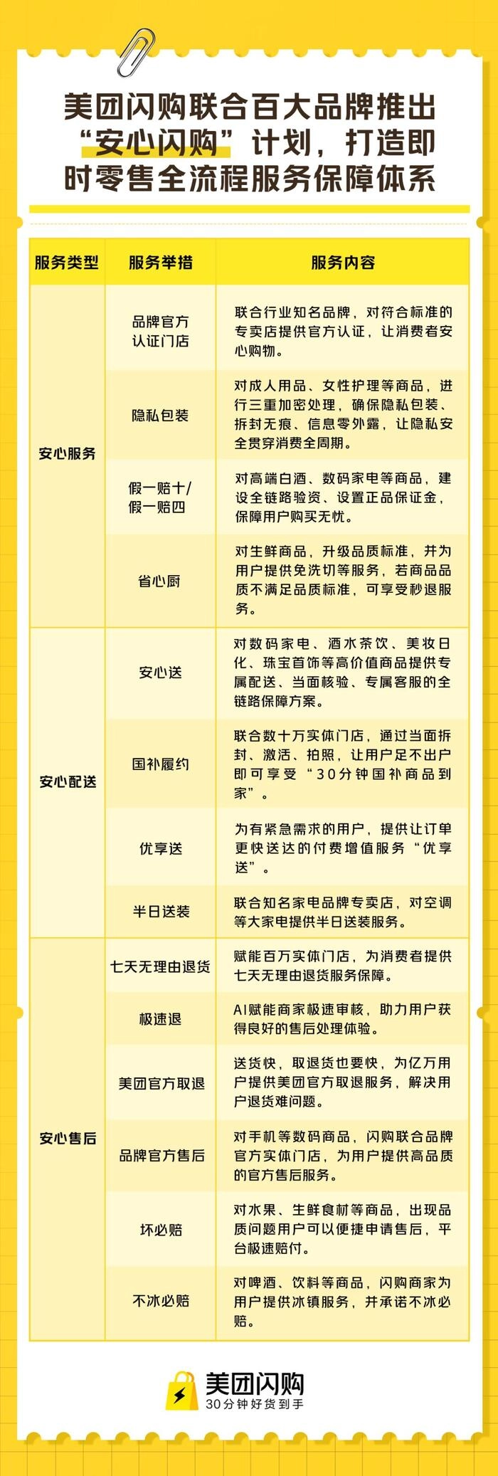 针对消费者最在意的售后服务,美团闪购早先就率先带动即时零售行业实现了七天无理由退货、高价值商品假一赔十/假一赔四等。在此基础上,“安心闪购”推出十几项超出电商标准、闪购独有的新举措。
