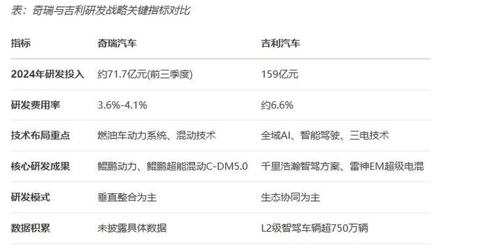 研发投入作为衡量企业创新力的核心指标,在奇瑞与吉利这两家车企之间呈现出鲜明的不同路径。