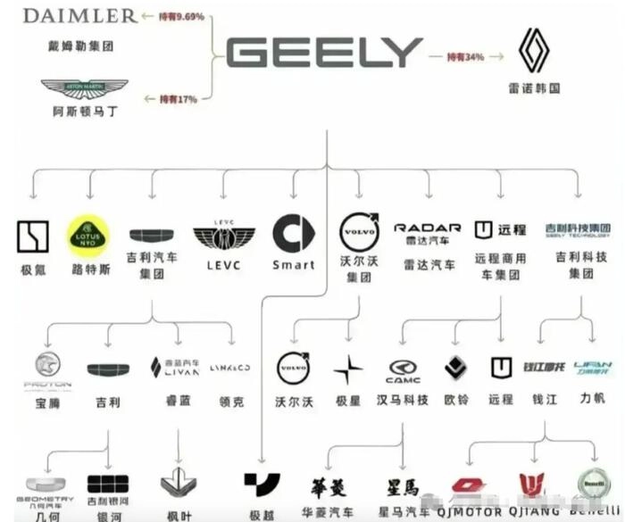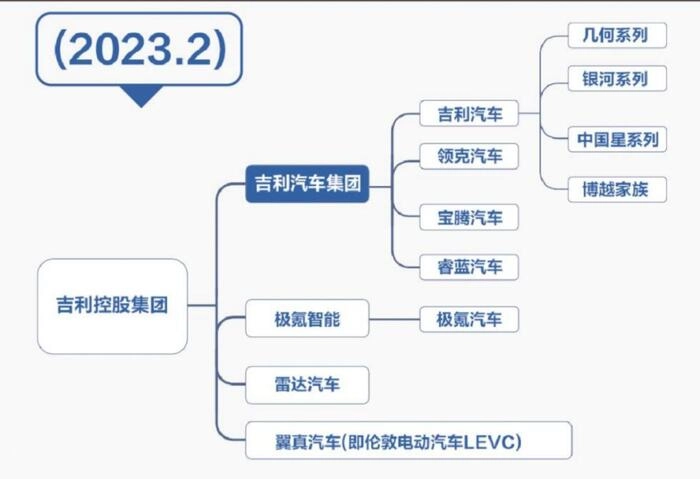在吉利的公告中,安聪慧保留了吉利汽车集团董事长,但不再担任吉利控股集团总裁,增加了吉利控股集团CEO。一会吉利汽车一会吉利控股,有点绕,在这里简单科普一下吉利的构架体系。