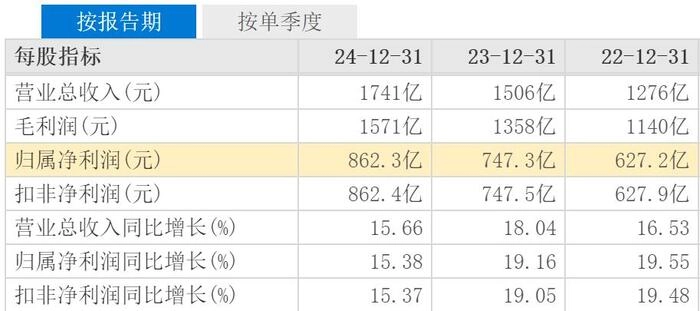 基金经理们对茅台的移情别恋和茅台的业绩放缓不无关系。近三年,茅台营收增幅分别为16.53%、18.04%和15.66%,整体增长不俗,但增速却明显放缓。同样归母净利润增速也由三年前的19.55%降至15.38%。对此,茅台却下调了年度目标,2025年营收目标仅增长9%。