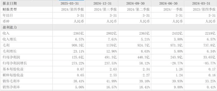 5月27日,拼多多发布2025年Q1财报,营收956.7亿元,同比增长10.21%,低于市场预期的1016亿元;上一年同期增速高达103.66%,增速下滑明显。营业利润160.856亿元,同比减少38%;归属母公司净利润147.4亿元,同比减少47.35%;经调整净利润169.16亿元,同比减少45%,低于市场预期的278.84亿元。