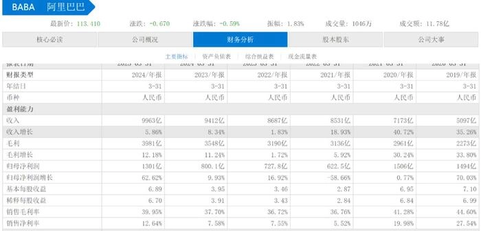 6月26日阿里巴巴(以下简称阿里)集团发布2025财年年报,财报显示,2025财年阿里营收9963.47亿元,同比增长5.86%,净利润同比增长62.4%至1259.76亿元。