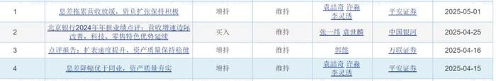 资本市场的反应是最敏锐的。2025年第一个交易日开盘至7月18日收盘,北京银行的股价上涨了18%,最新市值1450亿元。同时进入2025年至今,有平安证券、万联证券、中国银河以及平安证券四家机构对北京银行进行评价,其中三家增持,一家买入。