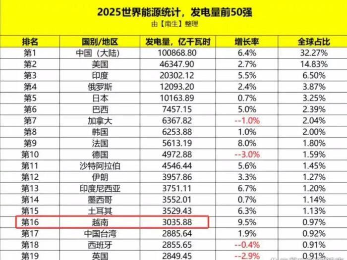 雅江水电未来发电量将创下史上之最,年发电量3000亿千瓦时左右。3000亿千瓦时是什么概念?2024年越南发电量为3035.88亿千瓦时,排在全球第16名,也就是说雅江水电工程的发电量超过了全球大多数国家一年的发电量。