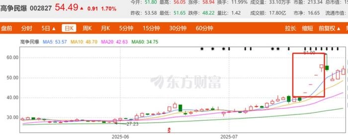 高争民爆是西藏唯一民爆牌照持有者,垄断工程前期爆破市场。雅江工程需开凿超百公里隧洞,炸药年需求达10万吨级,公司产能可覆盖70%订单,业绩弹性远超行业均值。受此利好,高争民爆在7月21日至7月25日迎来4个涨停。