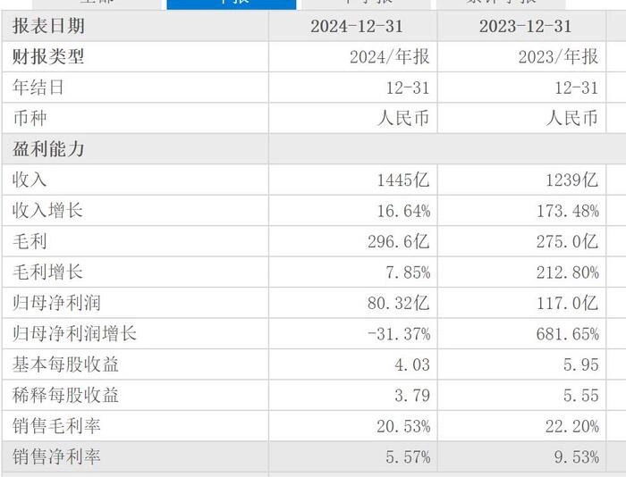 作为第一家盈利的新势力车企,理想在2023年扭亏为盈,净利润117亿元,2024年尽管净利润下滑了31.37%,依然净赚80.32亿元。但需要注意的是,理想在2023年的毛利率和净利率分别为22.20%和9.53%,2024年则为20.53%和5.57%,分别下滑了1.67个百分点和3.93个百分点。净利率下滑幅度较大,尤其是2025年一季度,理想净利率进一步走低,2.49%的净利率创下近几个季度新低。