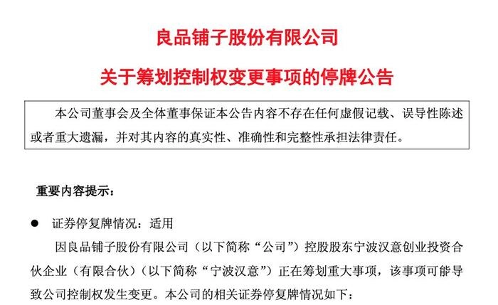 鉴于该事项正在洽谈中,尚存在不确定性,为保证公平信息披露,维护投资者利益,避免造成公司股价异常波动,良品铺子自7月11日起开始停牌,预计停牌时间不超过2个交易日。
