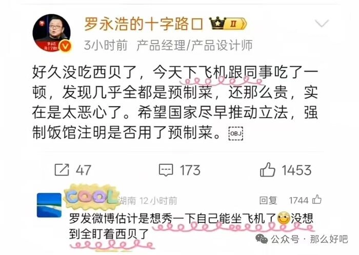 不管罗永浩有多少粉丝,客观来讲他作为一名消费者是有权力对消费项目进行点评的,企业对此一般做法是有则改之无则加勉,很少有像西贝这样的灾难性的公关。