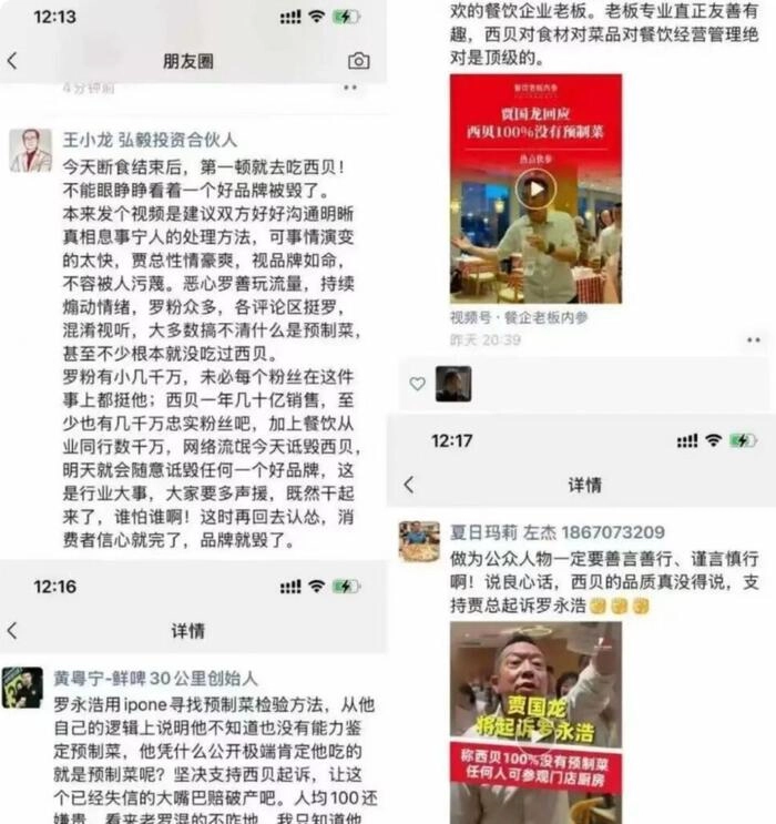 投资人史保刚认为,这一代的企业家虽然敢闯敢干,但是已经和现代的舆情处理方式脱节。“贾国龙本来在法律层面上没有做错什么,但罗永浩是消费者的同时,他还是一名网络名人,先是自证清白地表示西贝百分百没有一道预制菜,接着召开发布会,又公布罗永浩的菜单,这本身就陷入了自证陷阱,如果西贝不理罗永浩冷处理结果都会好得多。”