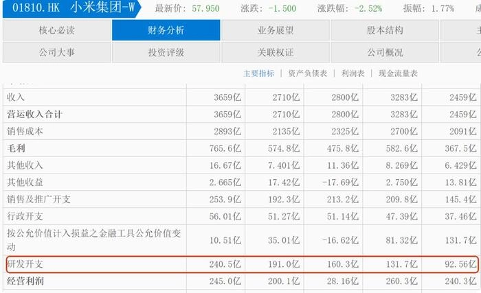 芯片的投入从长远来看,也是烧钱大户。目前小米造芯在今年5月自研芯片“玄戒”累计投入超135亿元,2025年3月发布的3nm旗舰处理器“玄戒O1”研发成本高达10亿美元/次,流片失败多次后仍坚持投入。造芯业务仅在2023年研发费用达87亿元,占总研发投入的18%。2025年单年研发预算超60亿元。研发团队超过2500人。