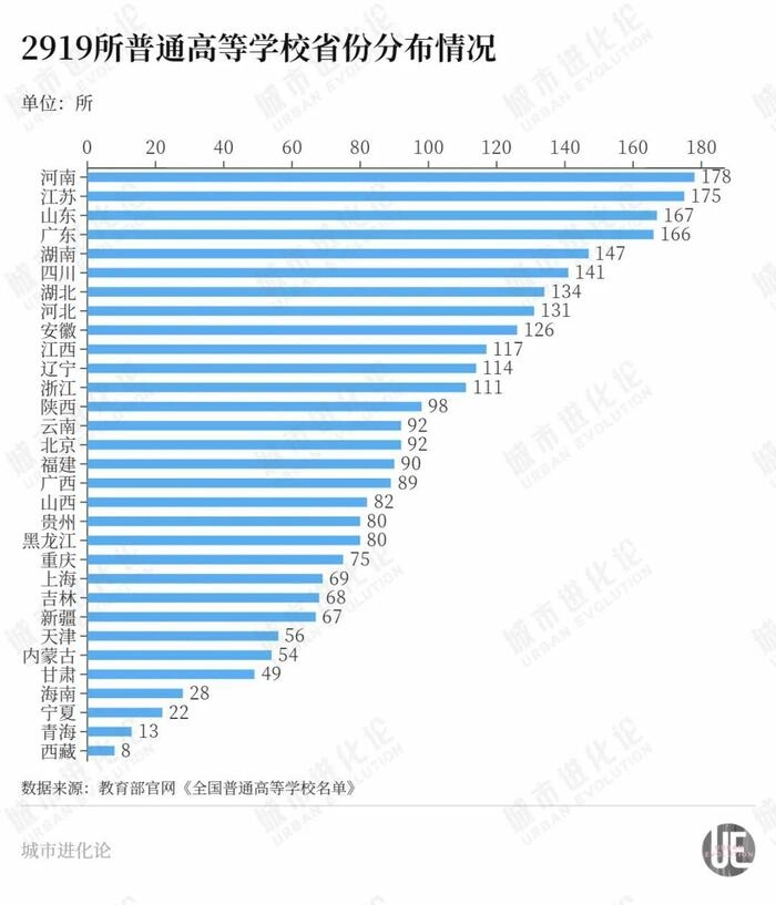 长期被诟病“高教洼地”,除了浙江大学这艘“航母”,其他高校影响力明显断层,高等教育总体实力与经济实力不甚匹配。《城市进化论》数据显示,截至2025年6月,国内共计有2919所普通高等学校,河南、江苏、山东分列前三,而浙江仅位居第十二位,和其经济地位极度不相匹配。排名甚至在辽宁、江西、安徽等经济实力远不如自己的省份。