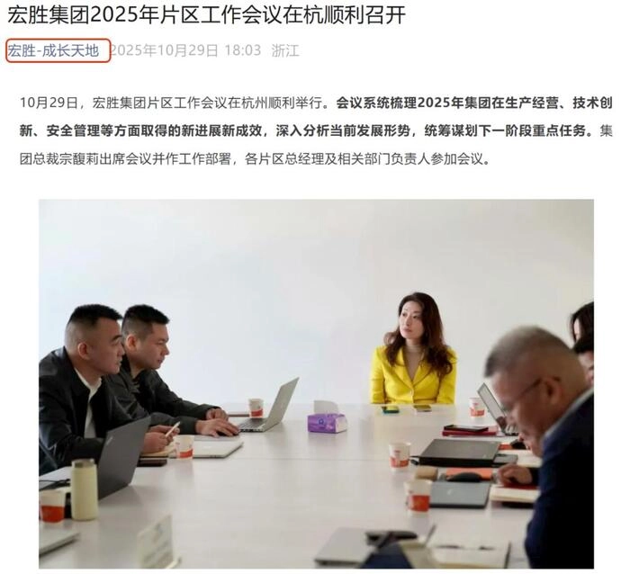 宗馥莉在今年遭遇了辞任又重新掌权,再度离职到再回归等一系列变故。40多天前宗馥莉辞任董事长,据宏胜集团旗下公众号“宏胜-成长天地”10月29日消息文章显示,10月29日,宗馥莉出现在宏胜集团片区工作会议现场。这是她向娃哈哈集团辞去法定代表人、董事、董事长等相关职务后的首次公开亮相,不过这一次,她不再是娃哈哈的掌舵者,而是以宏胜集团总裁的身份主持会议。