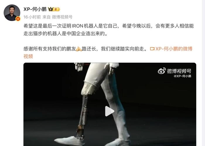 它拥有仿生脊椎、柔性皮肤、灵巧双手,甚至能走出“猫步”——轻盈、协调、拟人化程度极高。然而,正是这种高度拟真,反而引发了网络热议:这真的是机器人吗?还是真人穿着皮套在表演?质疑声迅速发酵,#小鹏机器人是皮套人#一度登上热搜。面对舆论风暴,创始人何小鹏于次日亲自发布一镜到底视频,拆解IRON结构,用事实回应质疑。