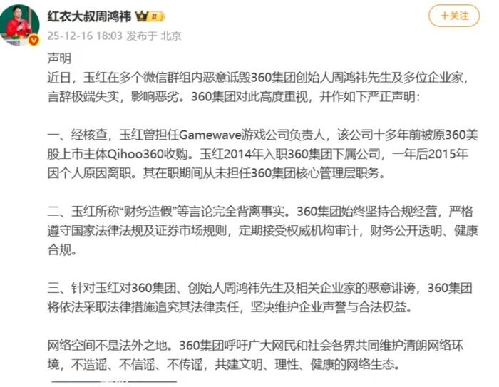 尽管这几日周鸿祎深陷“做假账”舆情,周鸿祎也在社交媒体上发文回应称“财务造假等言论完全背离事实,爆料人于2015年离职,从未担任核心管理职位。”这个事件甚至引发全网关注,从侧面也可以看出周鸿祎的影响力和粉丝量。