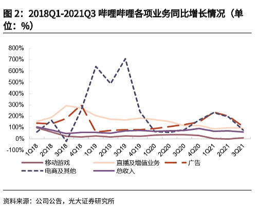 2020年,B站升级了悬赏计划,继续加码电商业务。悬赏计划由UP主推荐广告发展而来,UP主发布的视频和直播间可挂淘宝链接,带货赚取佣金。也是在这一年,B站直播业务增长快速。2020年第四季度,B站增值服务营收的占比首次超过了游戏业务,成为第一大营收来源。