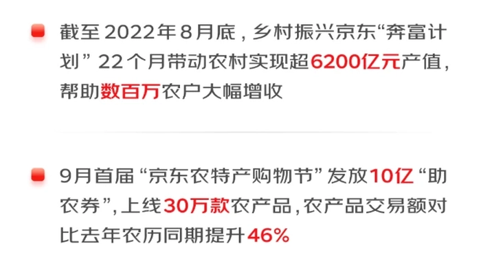 从三季报的财报上同样可以看出京东在农业领域的布局。财报显示,京东在农村产业方面取得不错的成绩,截止今年8月底,京东已经带动农村实现了超过6200亿元的产值,让数百万农户大幅增收。京东官方表示,未来京东还将持续展开更多相关活动,促进农产品的线上销售。