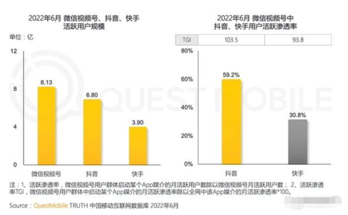 正如上文短视频从业者所说的那样,爱奇艺的竞争对手腾讯视频已经发力短视频。根据QuestMobile发布的《2022中国移动互联网半年大报告》数据显示,截至2022年上半年,微信视频号用户规模已经突破8亿。